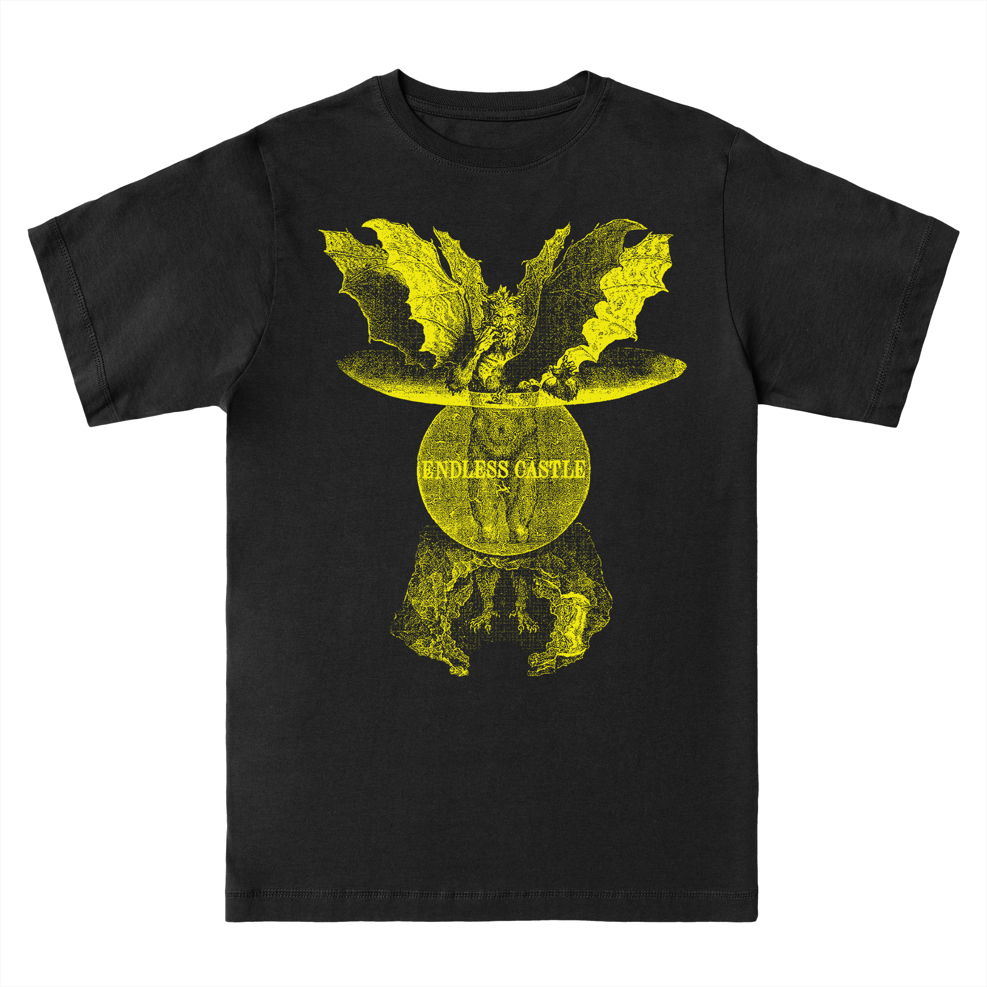 Yellow discharge screenprint on BLACK 200GSM 100% Cotton Rungspun Tshirt - Made to order to reduce waste.